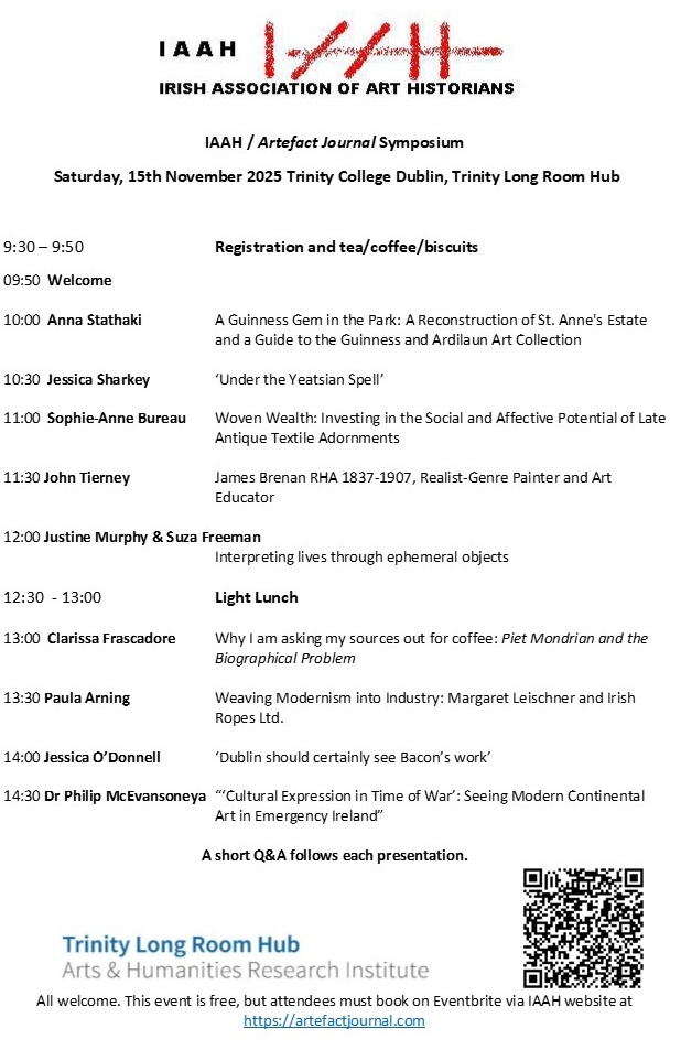 The IAAH / Artefact Journal Symposium in association with TCD History of Art and Architecture took place on Saturday, 15th November 2025 Trinity College Dublin, Trinity Long Room Hub